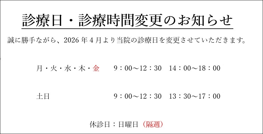 | 診療時間 | 月 | 火 | 水 | 木 | 金 | 土 | 日 |